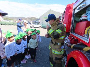 消防車と救急車が駐車場に来て、興奮していた子どもたち。