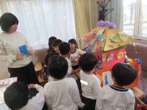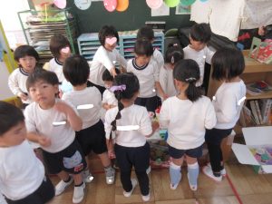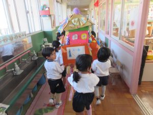 さて、保育参加の後、保護者の方になつめ祭りの商品を買っていただきましたが、こあら組と職員室の先生にも買ってほしいということで、チケットを渡しに行きました。