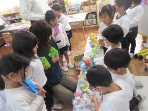 商品も作り、「いらっしゃいませ」と、やりとりを楽しんでいました。