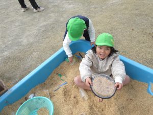 戸外では、籾殻の感触を味わいました。