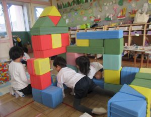 その翌日、ウレタンブロックでお店を作っていたA君!