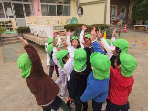 この時、水を飲みに行ったり、上着を着に行ったりしている子がいると、「あ、Aちゃん!エイエイオーするよ!」「B君来たらやろ!」と、全員が集まるのを待つことに、感動してしまいます!