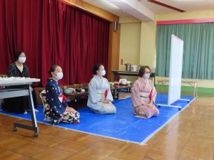 今年度1回目の今回は、お茶会での座り方、おじぎの仕方を教えてもらったり、「お道具」を見せてもらったりしました。