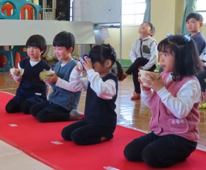 昨年度なつめ組のときには、「苦いから、全部は飲めない。」と言っていた子もゴクゴクと飲み切っていました。