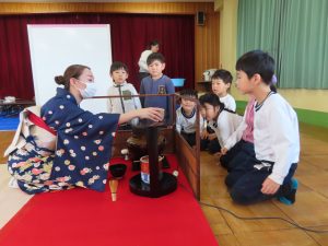 お菓子も抹茶も子どもたちが「お客様」に運びました。