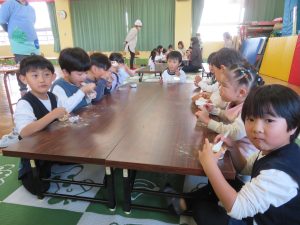 たいよう組の子どもたちが田植えをし、稲刈りをした餅米を使用しています。