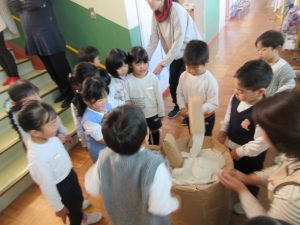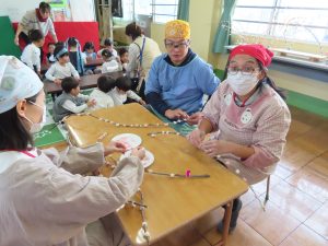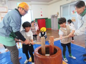 地域の方と、保護者のお力をお借りして、餅つき・花餅作りをしました!
