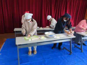 花餅作りは、指先に神経を集中させて・・・