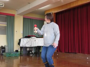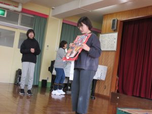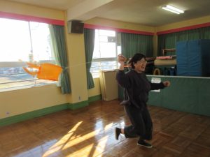 園長先生の話を聞いた後、お正月・伝承遊びの紹介です。