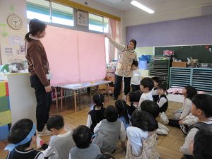 なつめ組の部屋に集まり、たいよう組さんが加納幼稚園とドッジボール対決をする話を聞きました。なつめ・こあら組の子は応援には行けないけれどみんなの気持ちをどうやって届けよう??と子ども達と相談しました。