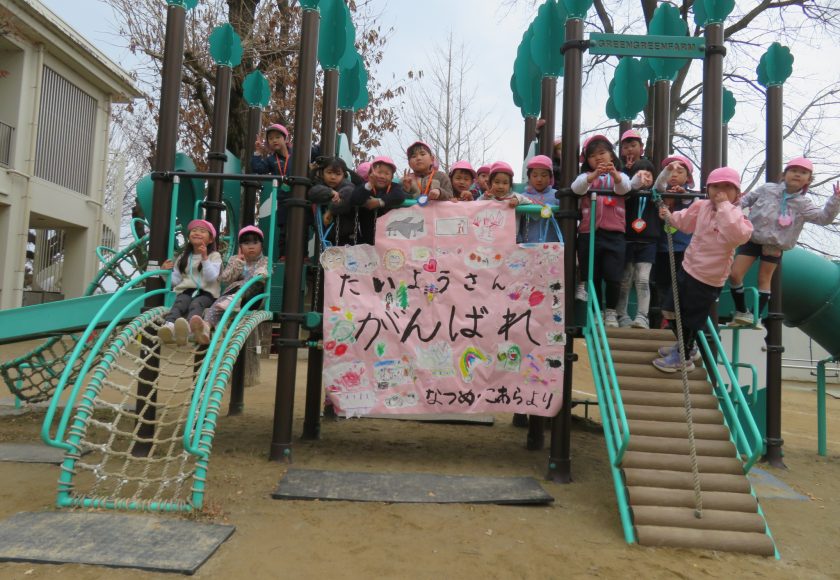 こあら組・なつめ組はたいよう組に応援幕を作ってくれました。