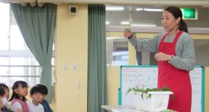 子どもたちが考えたように、①陽の光、②水(雨水の方が栄養たっぷりだそうです。)そして、③スペースが大事と話してくださいました。