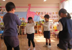 先週は毎日寒かったですね。雪が積もっていて、大喜びの子どもたち。「解けちゃうから、早く外に行かないと!」と、園庭に駆け出していきました。