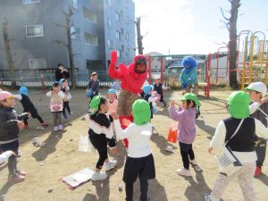 でも、「鬼さんは、実はみんなと一緒に遊びたかったみたい。どうやって言ったらいいか分かんなかったみたいだよ。」と、鬼が来た理由を知ると、「遊ぼって言ってくれたらいいよ。」と答えてくれる子もいました。