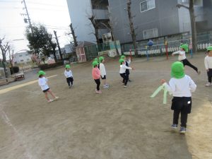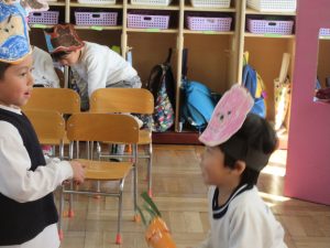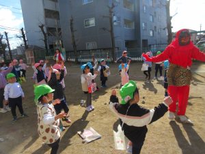 なつめ組オリジナルの鬼を作って楽しんでいましたが、いざ節分の日を迎えると、ドキドキしている子がたくさんいました。