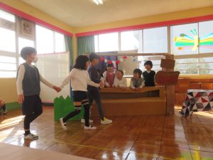 劇ごっことなると、途端にセリフが出なくなったり、緊張して小声になったりしていますが、「早くお客さんに見せたい!」と、招待するのを楽しみにしています。