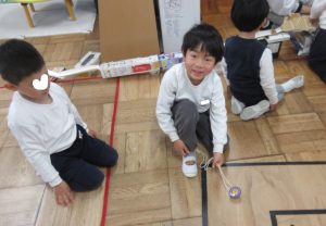 コマが回ると、周りの友達が、「見て!A君回った!」と喜んで教えてくれます。