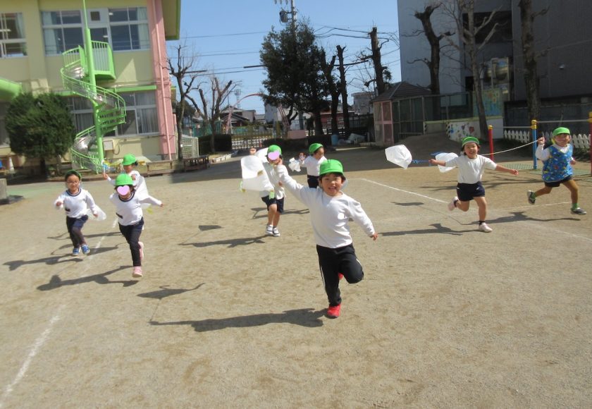 たくさん走って、凧揚げを楽しみました。