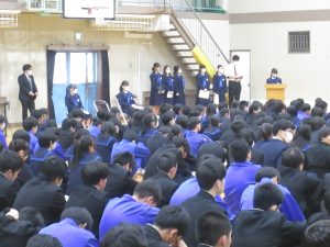 大変落ち着いた雰囲気の中、各学年の代表生徒のまとめをしっかり聴くことができました。