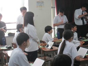 ○本日は1年5組のみなさんに、全校を代表して授業を公開してもらいました。