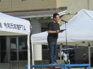 開会式には校長先生が激励の言葉を述べました。「参加した誰もが、よかった、楽しかったと感じられる場面をひとつでも多く!」