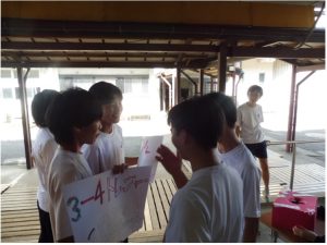 ・1年生の玉入れは、新聞紙で作ったたくさんの玉を、3箇所のゴールに入れました。普通の玉入れの籠・ゴールキーパーのいるバッティングネット・籠を背負って走る子等、いつもやっている玉入れとはちょっと違う面白いパターンの玉入れ競技が出来て、初めてのスポーツフェスタを楽しめたと思います。