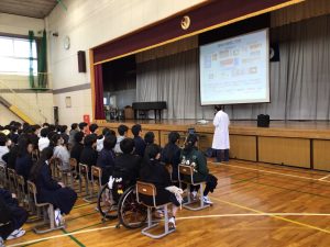 1月16日(金)6時間目に学校薬剤師の渡邉隆様にお越しいただき、「薬物乱用防止教室」を行いました。生徒の考える一般的な薬物だけでなく、お酒やエナジードリンクなどの様々な物にふれて話をしていただいたことで、身近なところに様々な危険が存在するということを感じることができました。