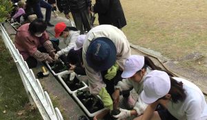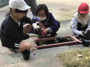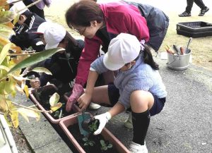 地域の白山清流クラブの皆さんに教えてもらいながら、プランターいっぱいに植えました。