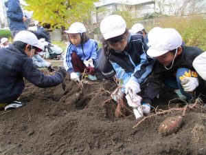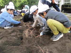 今日18日(火)は、2年生が春から育ててきたさつまいもを収穫しました。