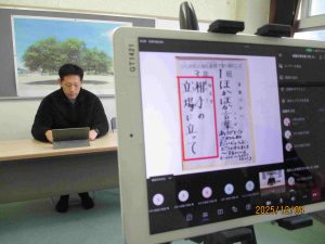 12月の「みんな笑顔の日」は、全校放送のオンラインを使って、道徳教育推進教師の先生からのお話です。