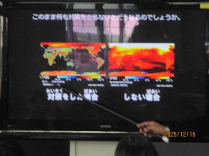 教室では、自分たちが大人になっても続く地球温暖化をなんとか食い止めて、みんなで守っていきたいと、真剣な表情で学習したことを振り返っていました。