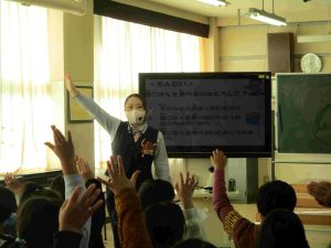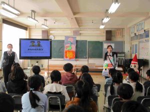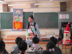 今日22日(月)は、ヤクルトさんから講師をお招きして、1・2年生が、出前授業を受けました。