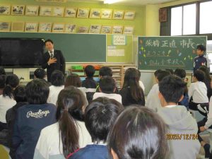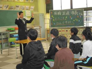 今日24日(水)、柴橋市長さんが白山小学校に訪問してくださいました。