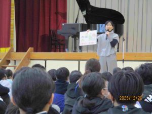 その後、冬休みの年末年始にかかわって、学習の進め方や生活で大事なことなどについて、各担当の先生からお話がありました。