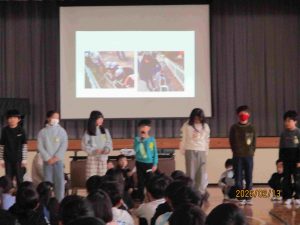 今日13日朝の児童集会では、4年生の栽培委員会からのお知らせがありました。
