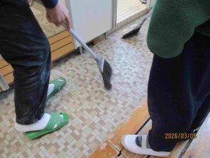 「いいよ。上手、上手。」「隅のほうも、きれいになっとるよ。」と、6年生のお兄さんたちに褒めてもらえました。