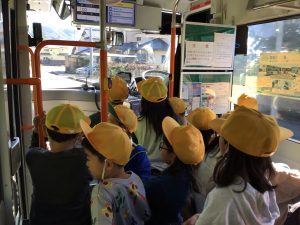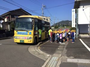 10月30日(木)に、ひのっこバスに乗って日野地域を周回しました。ひのっこバスは、毎日7便、日野地域を周回しているため、目にすることは多いものの、実際に乗るのは初めてという児童が多く、本日をワクワクしながら学習してきました。「日野保育園前」のバス停から乗車し、「日野小学校前」に帰ってくるという約50分の探検の中で、「あっ!ここ今度今度探検にくる場所だ。」「もうすぐ私の家が見えるよ。」「こんなところもあるんだな。」など、多くの発見や気づきがありました。運転士さんや乗客の皆様、トイレを貸していただいた平和堂の方々など多くの皆様に支えられて活動できることの喜びと感謝を感じながら、生活科の学習を深めることができました。ありがとうございました。