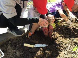 そっとシャベルで掘って、ごろんと出てきたお芋にわあ!っと喜びました。
