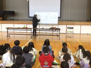2月3日(火)に達目洞自然の会、加納一郎さんに達目洞の自然についてのお話をいただきました。ヒメコウホネや達目洞の自然を守るために、加納さんが環境を整え、努力されていることがわかりました。子どもたちも加納さんに「ヒメコウホネはどれくらい咲くのですか」など、積極的に質問することができました。地域の自然に目を向けてくれることを期待しています。