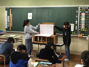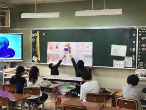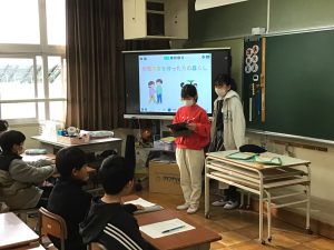 高齢者の方、子育て中の方、障がいのある方、外国から日本へ来た方がどんなことに困っていて、私たちに何ができるのかについて、プレゼンテーションや紙芝居などにまとめ、4年生へ発表をしました。