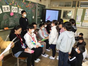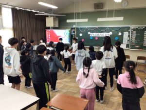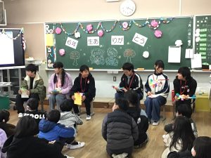 かがり火班ごとに5年生が中心となり、6年生にこれまでのかがり火活動で楽しかったことや感謝の気持ちを伝えました。3年生から手作りの首飾りを、5年生から1~5年生のみんなで書いた手紙を受け取り、6年生の子どもたちは、とても嬉しそうでした。