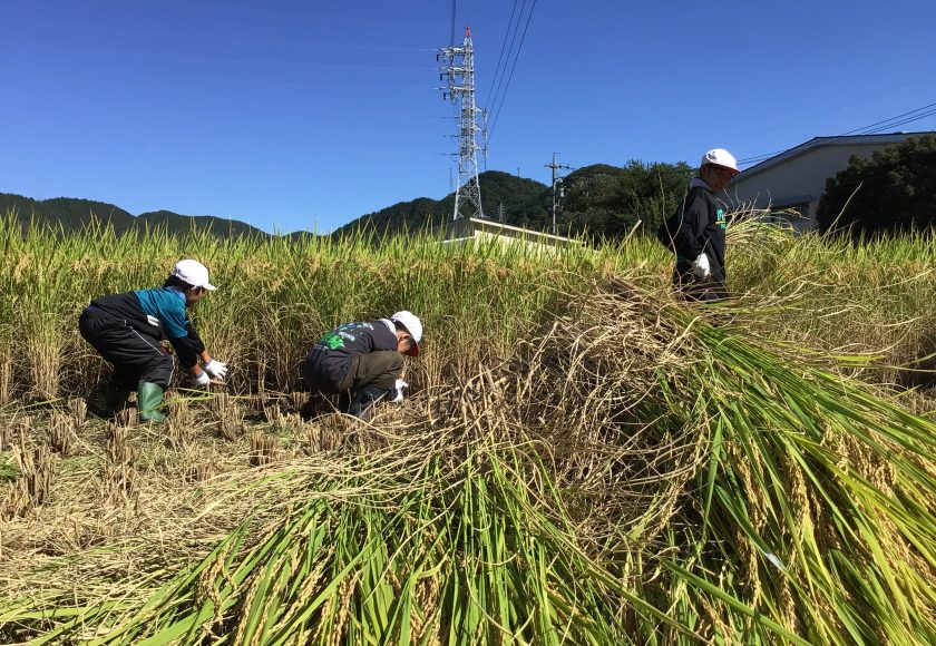 ザクっと力を入れて根元で一気に刈り取るコツを教えていただき、さあ、挑戦です。