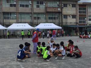 校長先生、そして、リレーの練習をしてきてくださった先生からのエールのあと、競技開始!