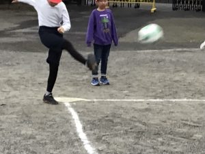 もう一つ、ソニー生命様からサッカーボールの寄附をいただきました。緑色が輝くすてきなボールです。授業で使わせていただきます。早速運動クラブがキックベースボールで使っていました。