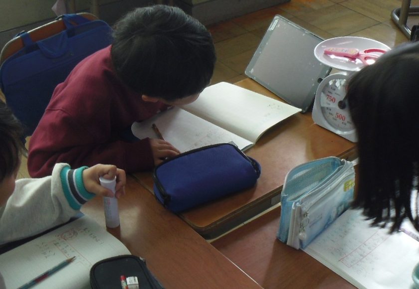 算数科の重さの学習の第1時です。実際にはかりを使って、身近なものの重さを計りました。めもりの読み方も理解できました。物を乗せる前に「〇グラムぐらいかな」と予想してから実際にやってみるステキな学び方の姿も見られました。