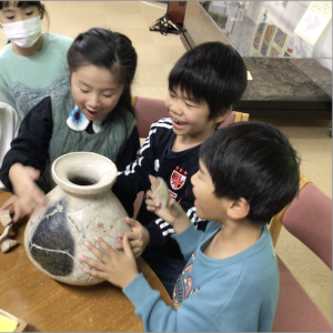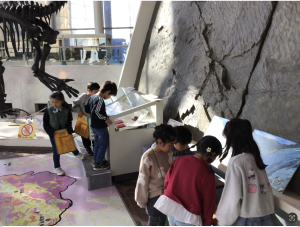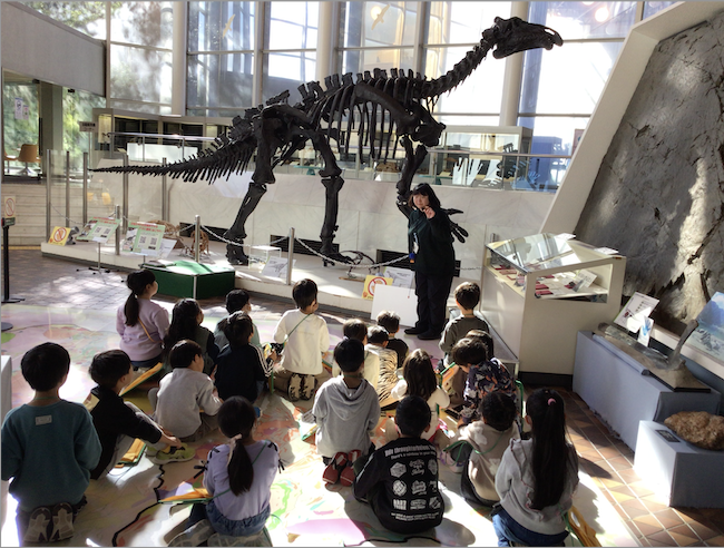 12月5日(金)、社会見学で関市にある岐阜県博物館へ行きました。展示されている大きな恐竜の化石を見ながら学芸員さんの話を聞いたり、化石のレプリカづくりを体験したりしました。恐竜は草食と肉食で歯の形が違うこと、アンモナイトはイカやタコの仲間だったことを知り、みんなとても驚きました。秋のおもちゃ体験もさせてもらいました。多くのことを学んだり、わくわくする体験ができたり、児童たちにとって大満足の社会見学となりました。