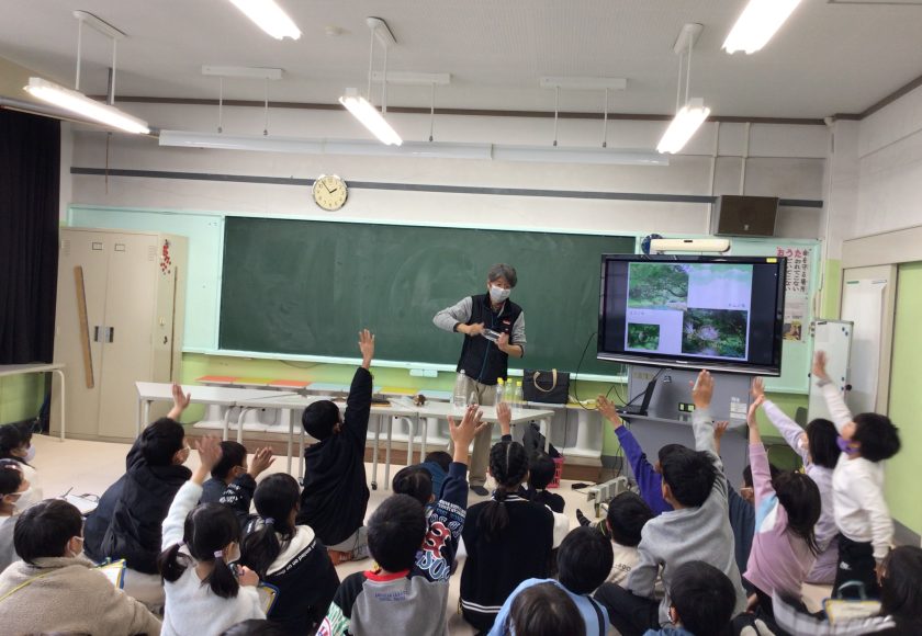総合的な学習の時間「いずみ」の学習で、地域に視点を当てて学習を進めてきたところ、地域の素敵なところがたくさん見つかってきました。先日、ふれあいの森の「薬木の広場」に行き、今回は近隣の岐阜薬科大学の酒井英二先生に、薬草についてお話を聞きました。