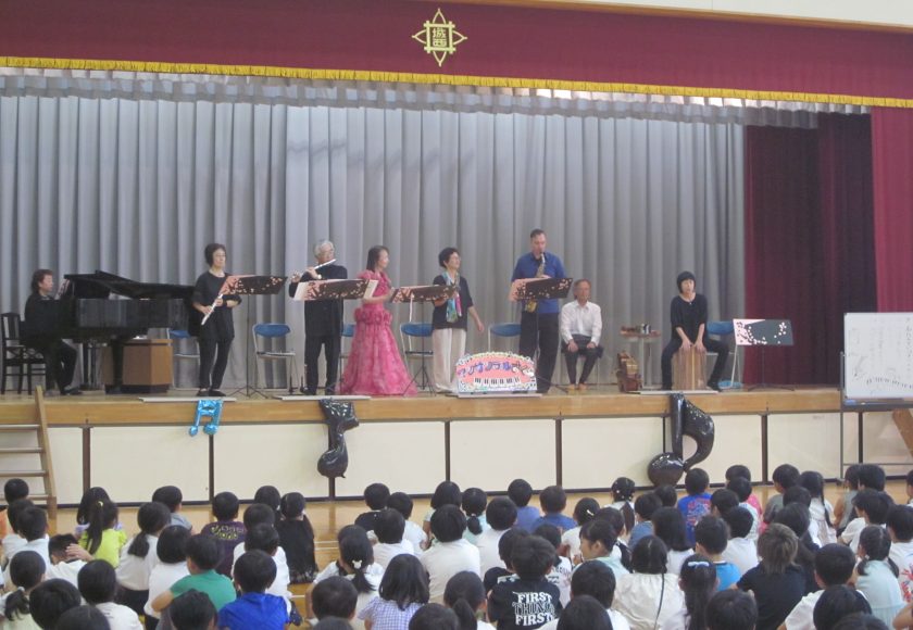 夏休みあけの学校生活を、元気で笑顔でスタートしてほしいという願いの下、城西公民館主催の「みんなが楽しめるコンサート」を城西小学校で開催しました。「アンサンブルさくら」さんをお招きし、アニメソングや教科書に出てくる曲などの演奏を楽しみました。一緒に歌を歌ったり、手拍子をしたりして参加し、心温まる楽しい時間を、地域や保護者の方と過ごすことができました。
