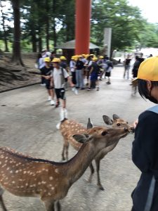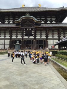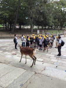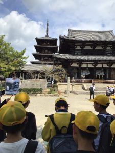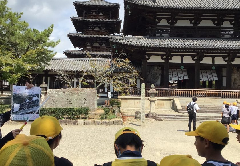 1日目は、法隆寺→東大寺→奈良公園班別研修(正倉院・二月堂・三月堂・若宮神社・春日大社・采女神社・氷室神社・奈良国立博物館・浮見堂など各班で計画)→興福寺・国宝館→猿沢池ショッピング。