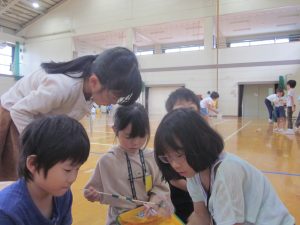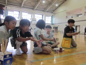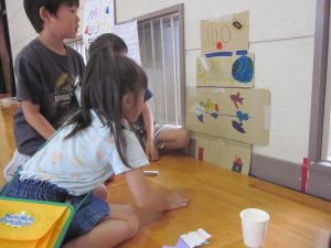2年生の生活科の学習「せかいで ひとつ わたしのおもちゃ」で、自分たちで作ったおもちゃを使って、1年生を招待した「おもちゃランド」を開きました。2年生は「1年生が楽しめる会にしよう」と、準備を進めました。